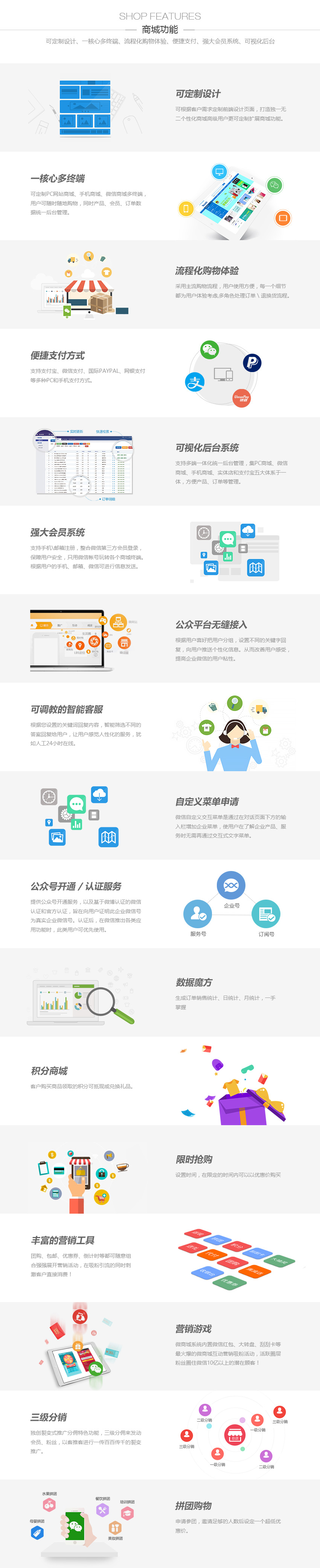 公司集創造和優化于一體,致力追求輕、快的商城系統